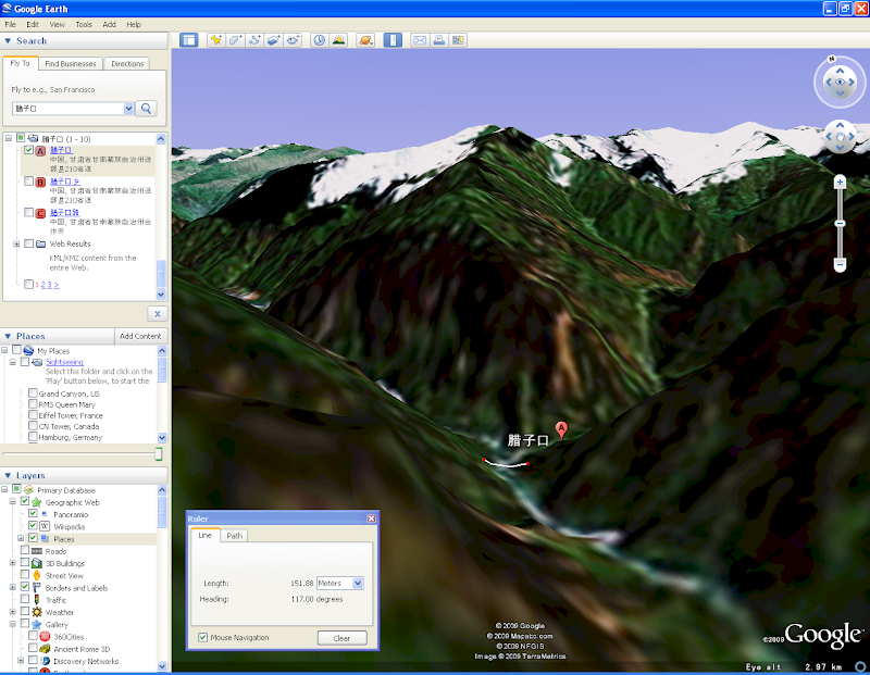 那河大概有100米宽,山顶高出山谷1000米左右。