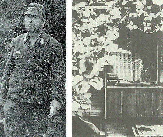 图片1(左)战时的今村大将 (右)刑满释放后在谨慎室自我反省的今村大将